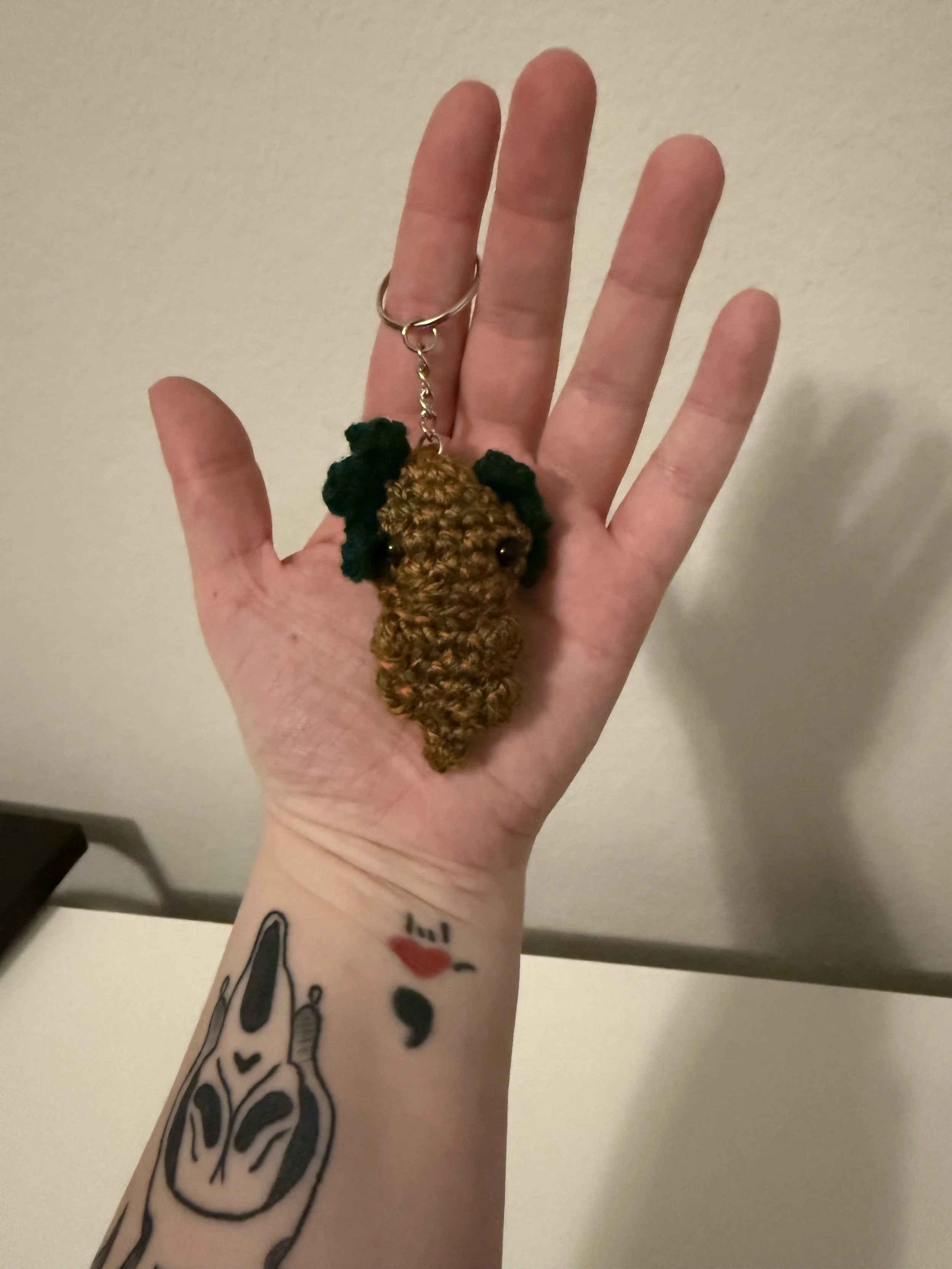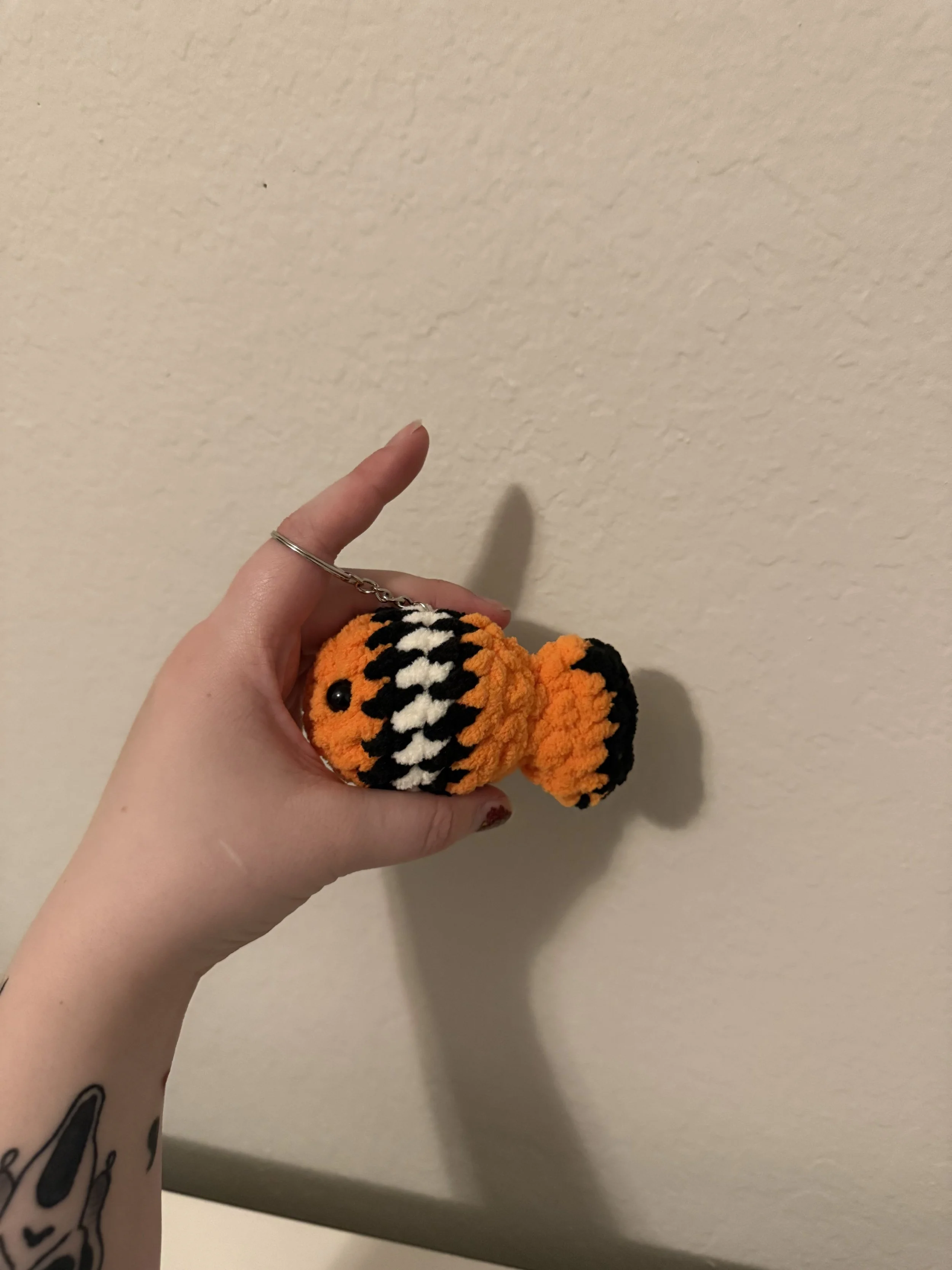 Keychains Categories: All Small Plushies Holiday Ghosts Big Plushies Keychains Medium Plushies Pride Misc. Wearables All / Dino Keychains $8.00 Frog Keychains $8.00 Clownfish Keychain $8.00 Mushroom Keychain $8.00 Ray Keychain $8.00 Bee Keychain $8.00 Axolotl Keychain $8.00